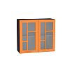Шкаф верхний с 2-мя остекленными дверцами Техно В 800 Оранжевый металлик-Венге