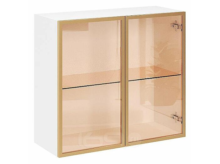Шкаф верхний с 2-мя остекленными дверцами Золотой/Белый Полки Стекло 716*800*322