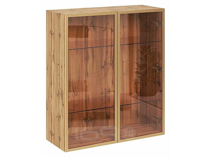 Шкаф верхний с 2-мя остекленными дверцами Золотой/Дуб Вотан Полки Стекло 920*800*322