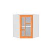 Шкаф верхний угловой остекленный Техно ВУ 590 Оранжевый металлик-Белый