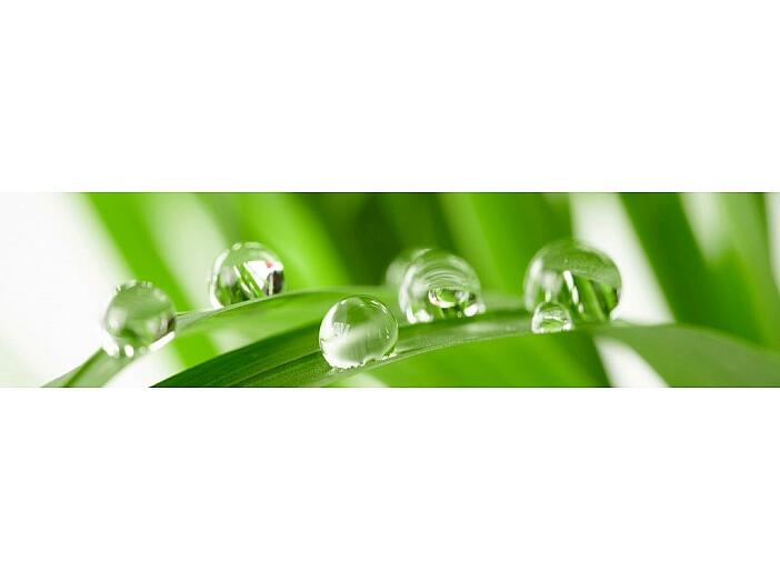 Описание:Кухонный фартук с каплями росы на зеленой траве добавит в помещение свежего летнего настроения.