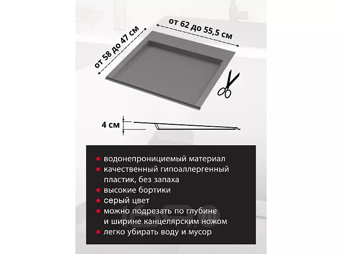 Поддон можно подрезать по ширине и глубине канцелярским ножом
