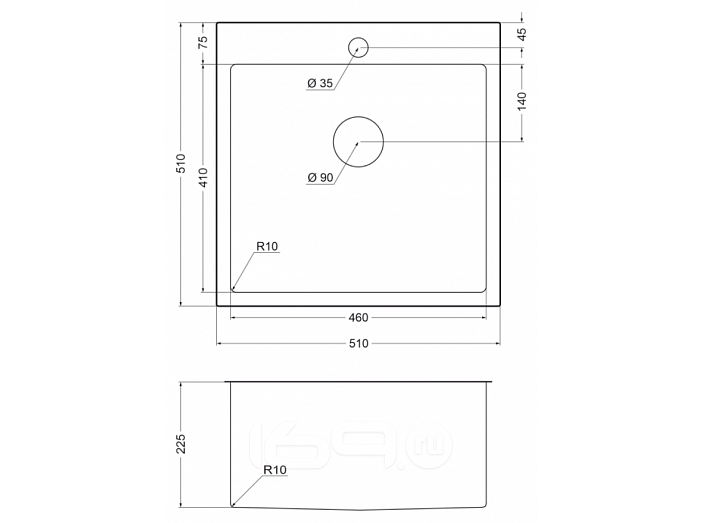 Диаметр слива:9