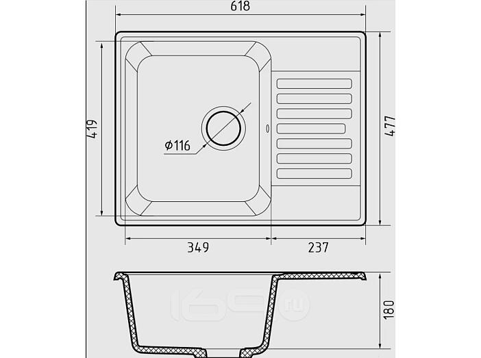 Мойка GranFest Quarz 13 1 чаша с крылом 620*480 темно-серый