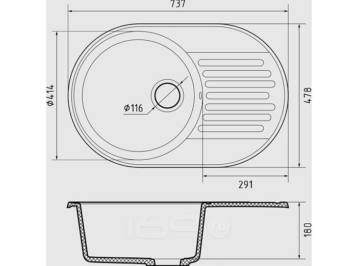 Мойка GranFest Quarz 18 1 чаша с крылом 740*480 темно-серый