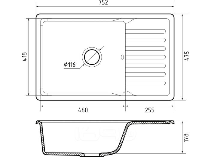 Мойка GranFest Quarz 72 1 чаша с крылом 760*480 белый