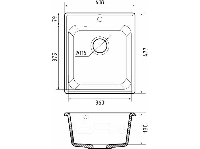 Мойка кварцевая ЭкоМ 4248 1-чаша 420*480мм черный