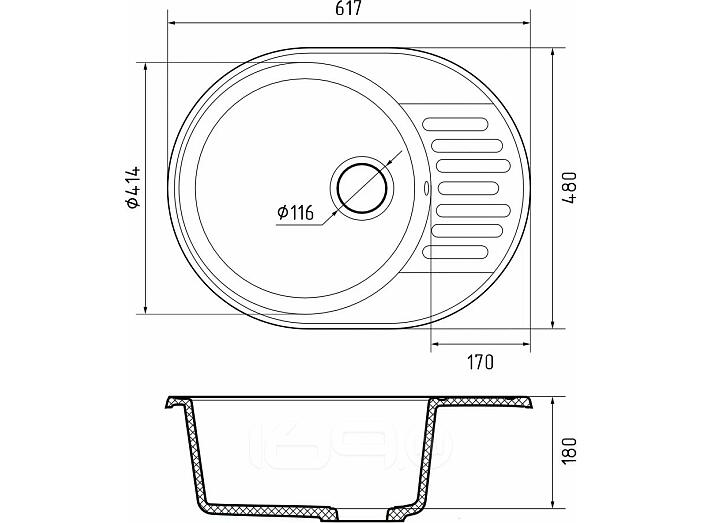 Мойка кварцевая ЭкоМ 6148 1-чаша+крыло 620*480мм серый