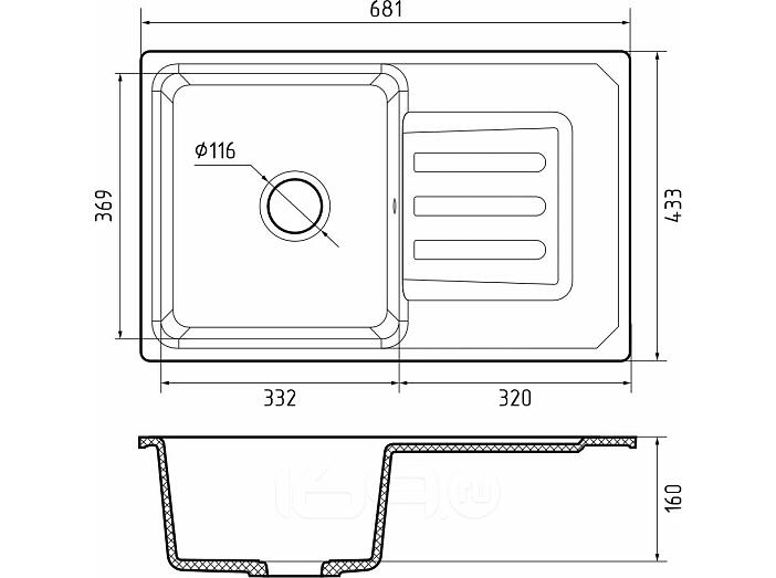 Мойка мрамор ЭкоМ М-680 1 чаша+крыло 680*430мм бежевый