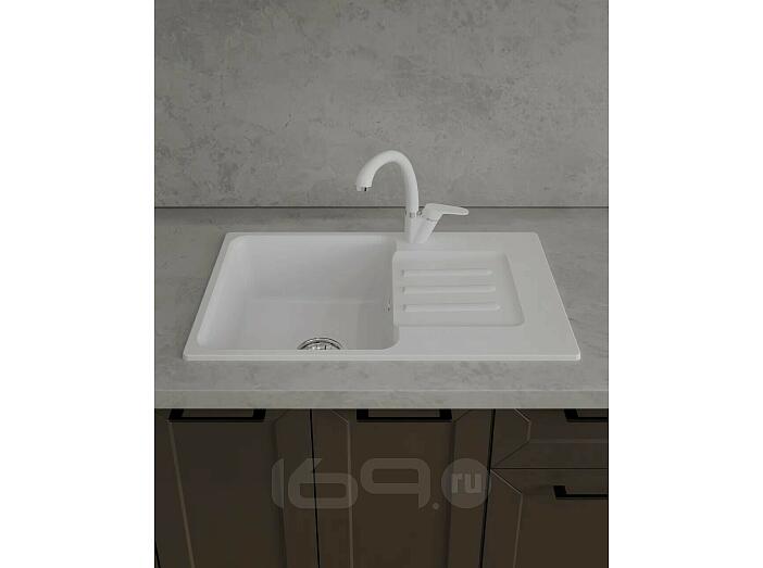 Мойка мрамор ЭкоМ М-680 1 чаша+крыло 680*430мм белый