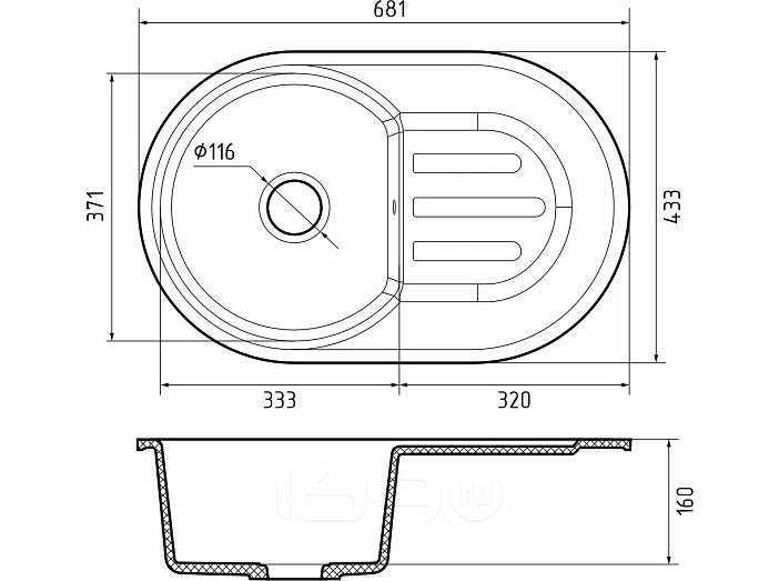 Мойка мрамор ЭкоМ М-685 1 чаша+крыло 683*433мм белый