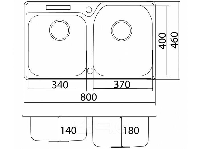 Размеры чаши: (Д x Ш x Г) 370 x 400 x 180 и 340 x 340 x 140 мм