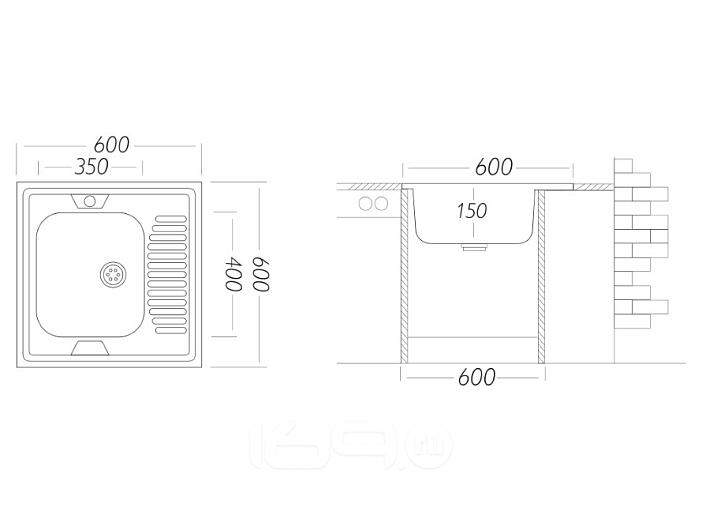 Мойка накладная STD600.600---5C 0R- Матовый металл 600*600 (чаша справа)
