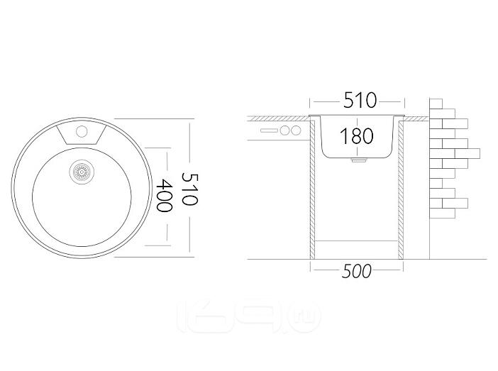 Кухонная врезная мойка 5118/0,8 1Ч с круглой чашей. Подходит для тумб от 45 см. Чаша снаружи покрыта шумопоглощающей пленкой. Площадка под смеситель по центру чаши в верхней части, выпускается с переливом для воды в чаше.