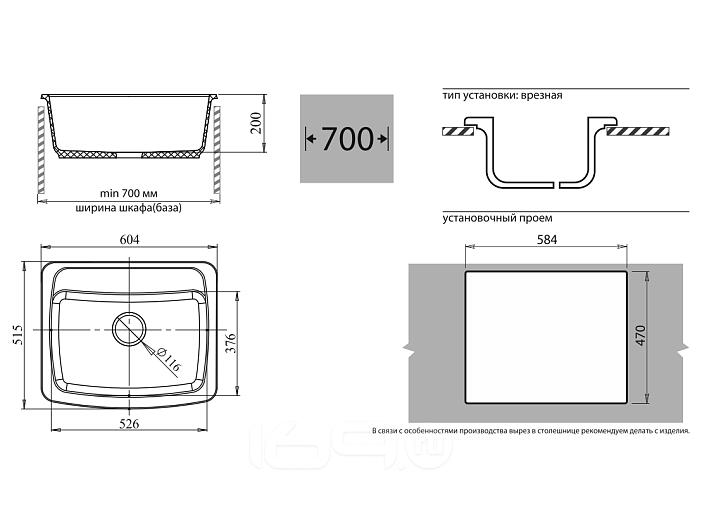 Состав поставки:мойка кухонная, сифон, инструкция