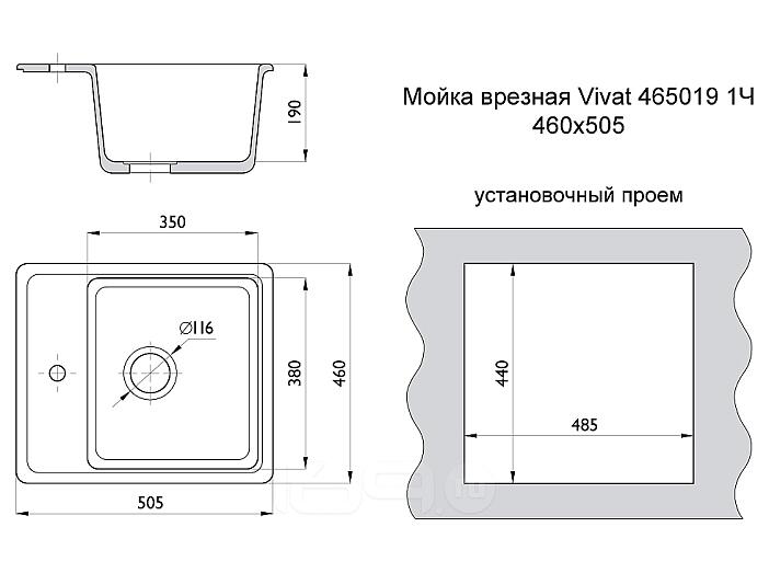 Описание:Квадратная мойка Vivat 465019 1Ч с одним крылом и одной чашей. Подходит для тумб от 50 см