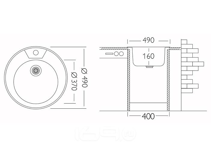 Кухонная врезная мойка Vivat 4916/0,6 1Ч с круглой чашей. Подходит для тумб от 60 см. Чаша снаружи покрыта шумопоглощающей пленкой. Площадка под смеситель по центру чаши в верхней части, выпускается с переливом для воды в чаше.