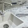 Поверхность смесителя окрашена в цвета кварцевых моек GranFest QUARZ.