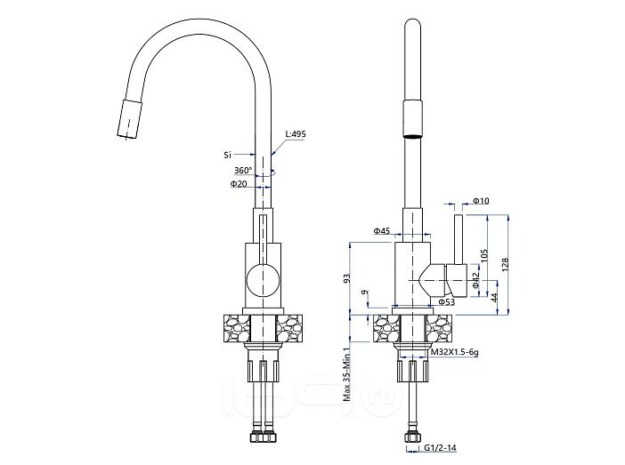Смеситель для кухни U-обр. с гибким изливом GranFest URBAN 5433 PVD графит