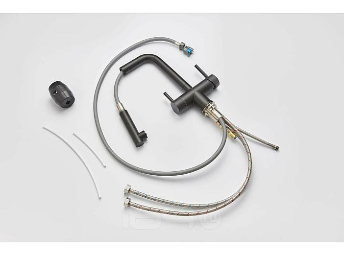 Кухонный смеситель с возможностью подключения фильтра для очистки воды. Фильтрованная вода подается отдельной ручкой через отдельную трубку и не смешивается с водопроводной водой.