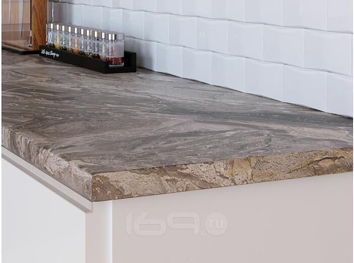 Столешница прямая влагостойкая (5) Мрамор Бергамо, Матовая, кромка с 4-х стор. в цвет столешницы 3000х600х38
