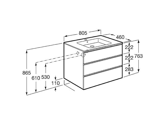 Тумба для раковины Roca The Gap 80 белый глянец 3 ящика