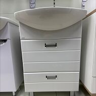 Тумба Вега 60 DORATIZ 9912.496, напольная, белая, под умывальник Балтика отличается простыми формами, имеет горизонтальную фрезеровку и оригинальные прямоугольные ручки. Каждая деталь этой мебели сочетает в себе практичность и функциональность. Корпус из влагостойкой ЛДСП и фасады из высококачественной МДФ, облицованные толстой глянцевой белой пленкой. Тумба комплектуется регулируемыми по высоте опорами и фурнитурой. Для комплектации тумбы идеально подойдет умывальник Балтика. Мебель TM Doratiz изготавливается в Российской Федерации в соответствии с ГОСТом 16371-2014. Все материалы, используемые в производстве, соответствуют санитарно-эпидемиологическим стандартам, что подтверждается соответствующими сертификатами. Поставляется в собранном виде и готово к установке. Вам остается только снять защитную пленку.