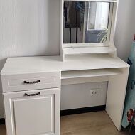 Идеальное место для полки с зеркалом – комод или туалетный столик. Материалом для фасада изделия служит прочный и экологичный МДФ, корпус же выполнен из ЛДСП с внушительным сроком эксплуатации.