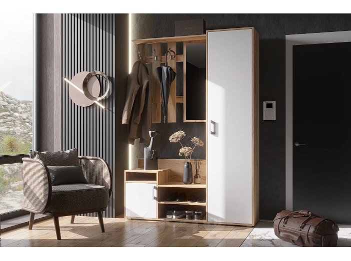 Прихожая Визит (Белый глянец холодный/Дуб крафт)