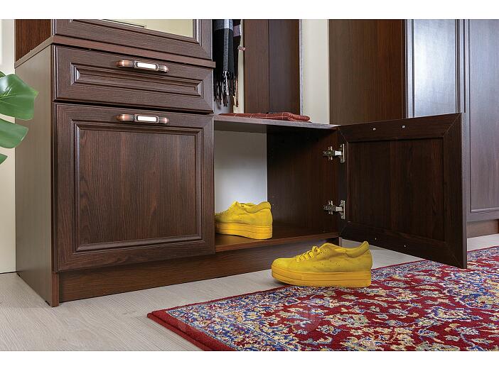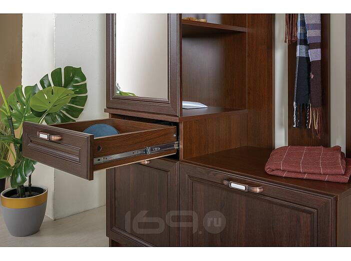 Шкаф комбинированный Мадэра 10.15 поможет создать приветливую и благоприятную атмосферу, которая с порога будет окутывать теплом. Штанга для вешалок-плечиков и крючки созданы для размещения верхней одежды. Для головных уборов создана небольшая антресольная полка, а две тумбы внизу изделия предназначена для бережного хранения обуви. Зеркало перед выходом из дома позволит убедится в том, что выглядите вы неотразимо. За зеркалом скрыты полки для размещения косметики, украшений и различных мелких предметов.