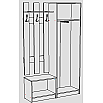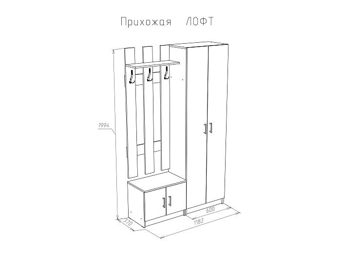 Шкаф имеет ширину 600 мм, внутри есть штанга для вешалок. Ширина тумбы и открытой вешалки составляет — 582 мм. У тумбы за дверцами — вместительное отделение для обуви.