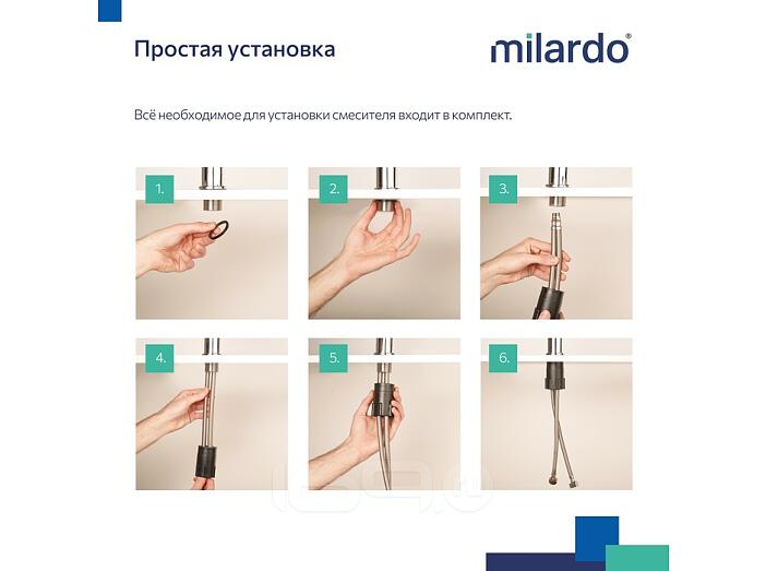 Смеситель для кухни с гибким изливом и душевой насадкой, глянцевый хром, Meal, Milardo, M05SB2FM05