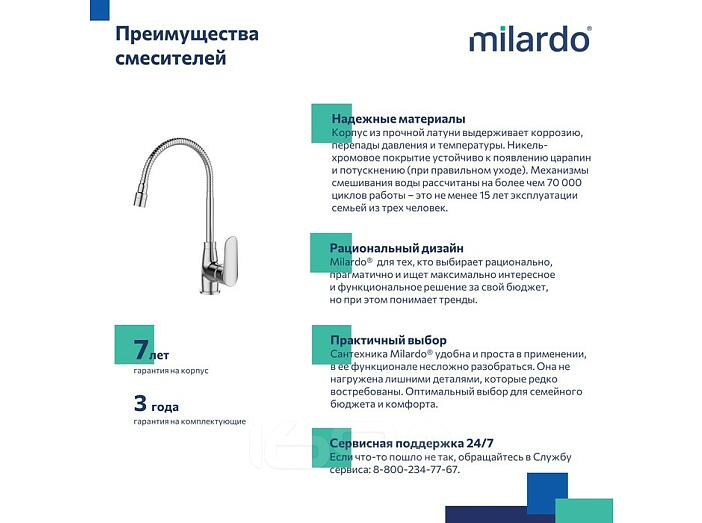 Смеситель для кухни с гибким изливом и душевой насадкой, глянцевый хром, Meal, Milardo, M07SB2FM05
