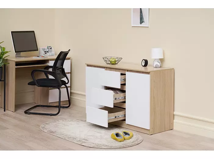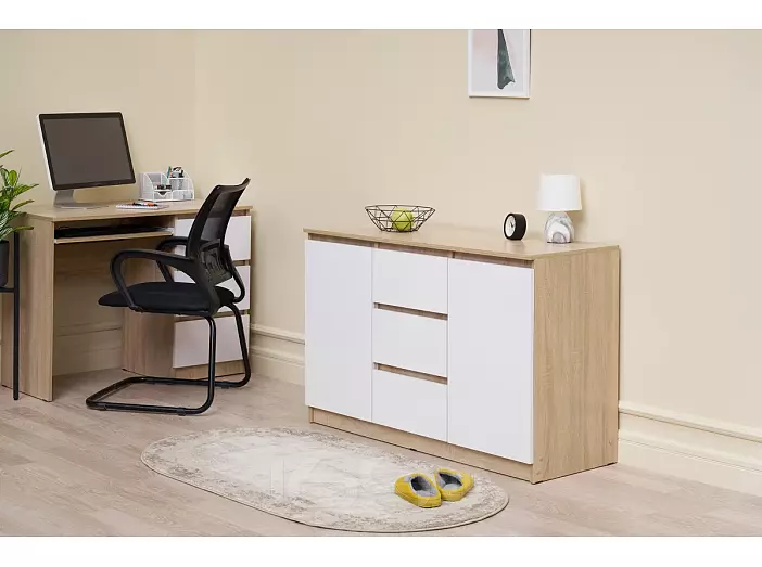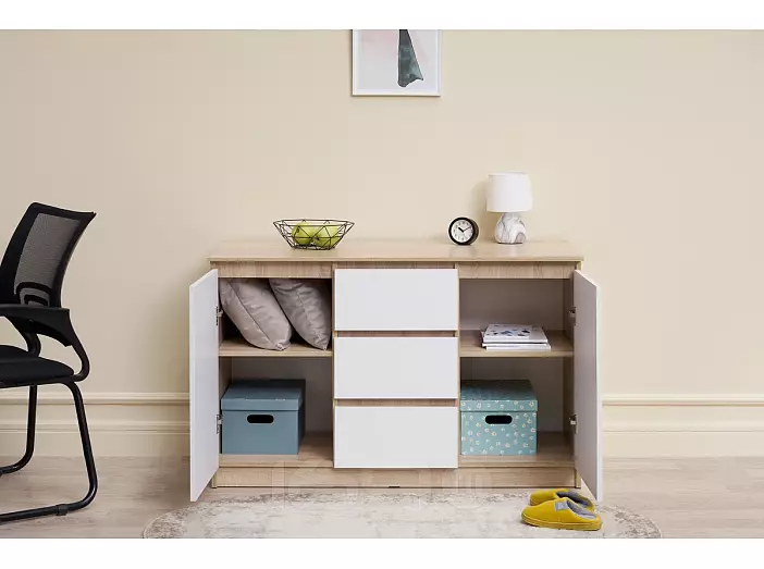 Челси Комод 1200 (2 двери 3 ящика) (Белый глянец, дуб сонома)