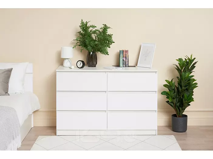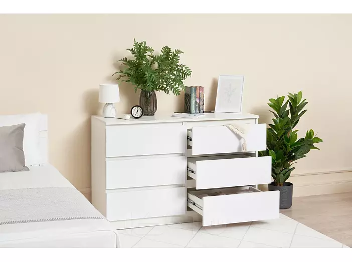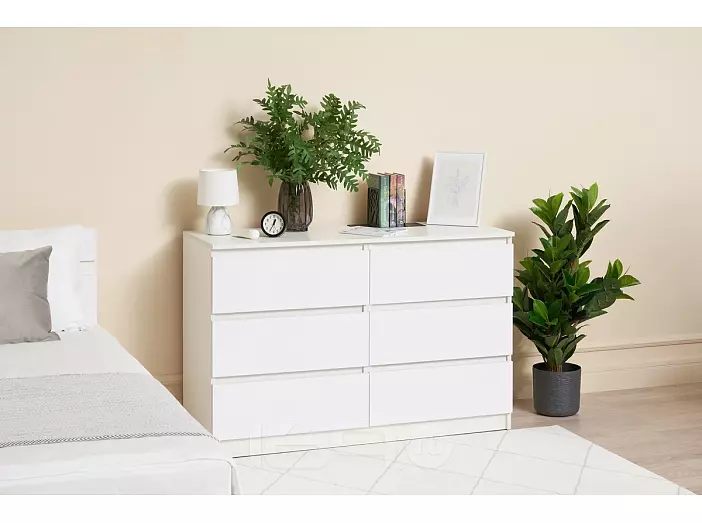 Челси Комод 1202 (6 ящиков) (Ш) (Белый глянец, белый)