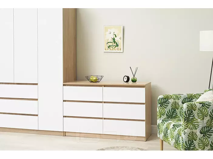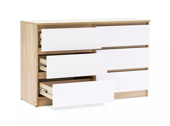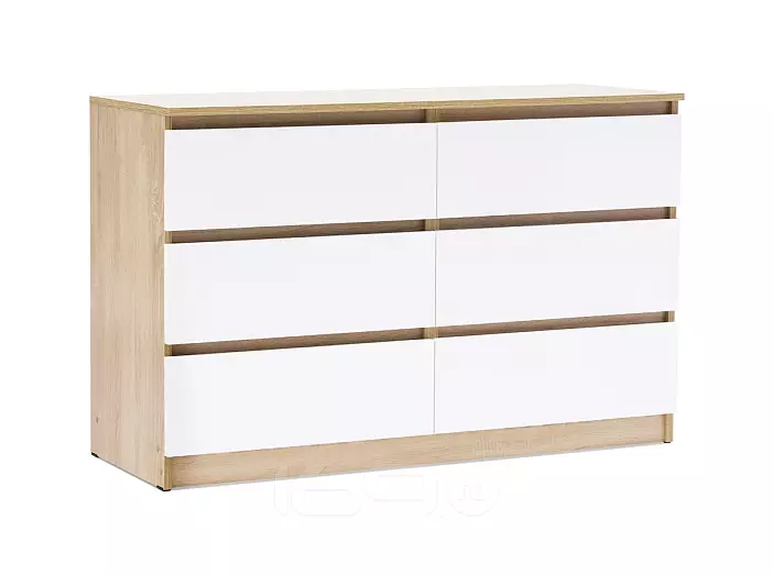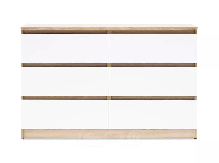 Челси Комод 1202 (6 ящиков) (Ш) (Белый глянец, дуб сонома)
