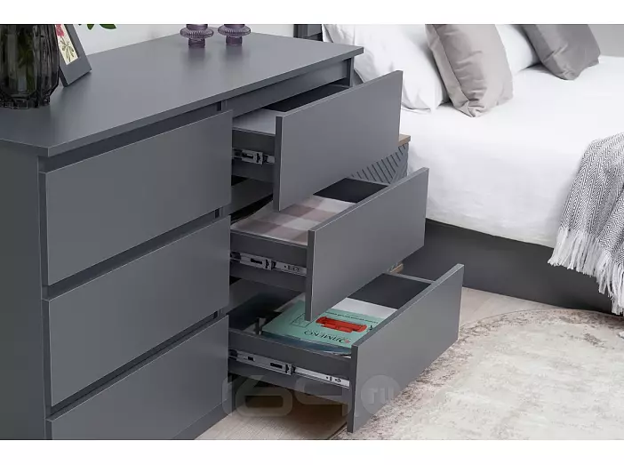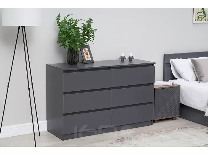 Челси Комод 1202 (6 ящиков) (Ш) (Графит, графит)