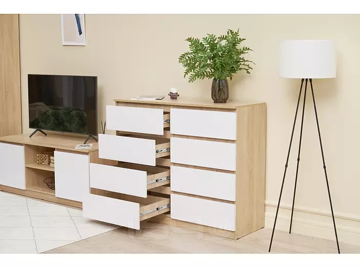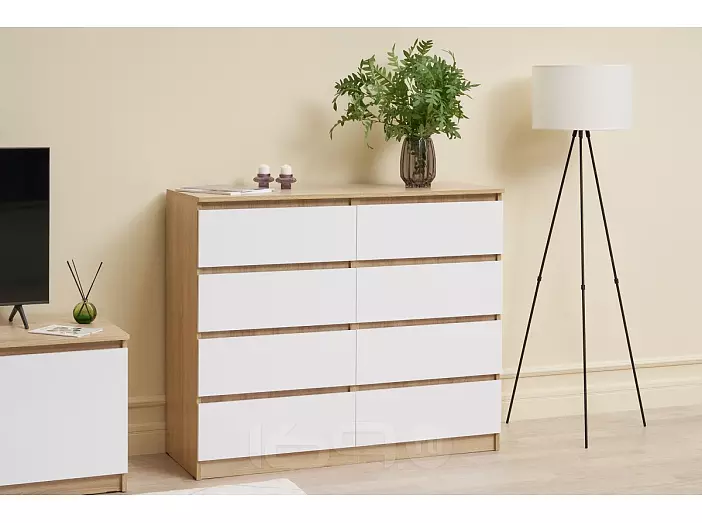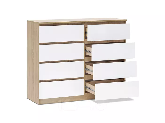 Челси Комод 8 ящиков (Белый глянец, дуб сонома)