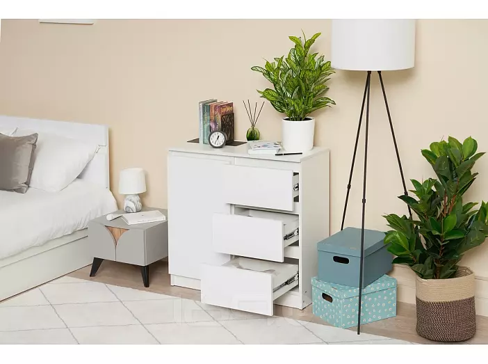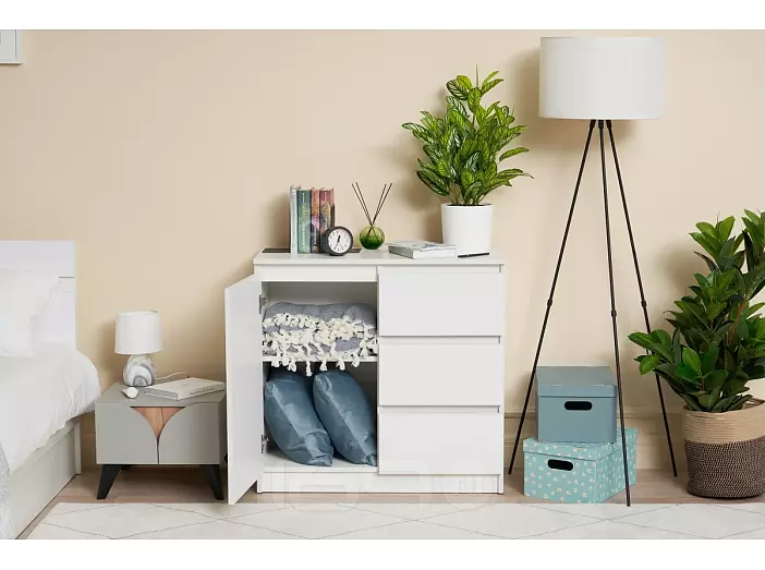 Челси Комод 800 (3 ящика 1 дверь) (Белый глянец, белый)