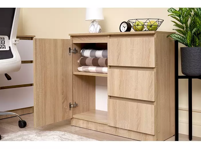 Челси Комод 800 (3 ящика 1 дверь) (Дуб сонома, дуб сонома)
