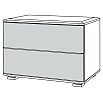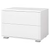 Комод и тумба выполнены в глянцевом белом МДФ с широкой декоративной фаской по граням изделий.