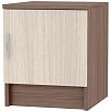 Прикроватную тумбу Бася собрали из прочного ЛДСП, задние стенки – из ДВП. У мебели всего один отсек, который прикрывает дверца. Для простоты эксплуатации к створке прикрутили удобную ручку-скобу. Цвет оформления модели – светлый Ясень Шимо. Компактная тумба Бася займет минимум полезной площади в комнате. Если поставить мебель рядом с кроватью, то на столешнице поместятся ночник и будильник, внутри – полезные мелочи. Конструкцию можно задвинуть под письменный стол, увеличив систему хранения рабочего места.