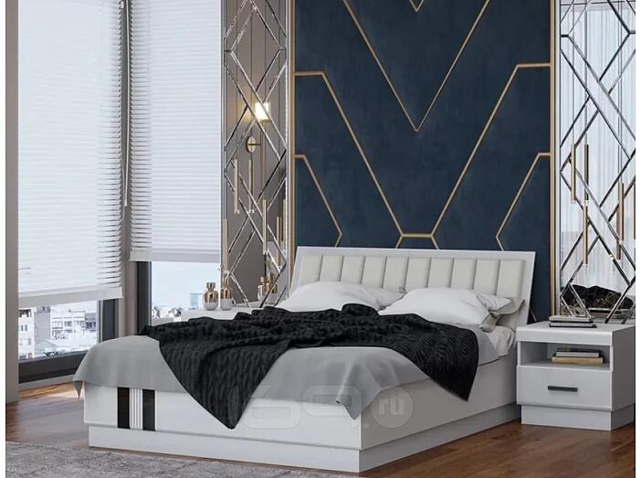 Кровать Магнолия экокожа белый глянец с подъемным механизмом 1600x2000, изголовье мягкое