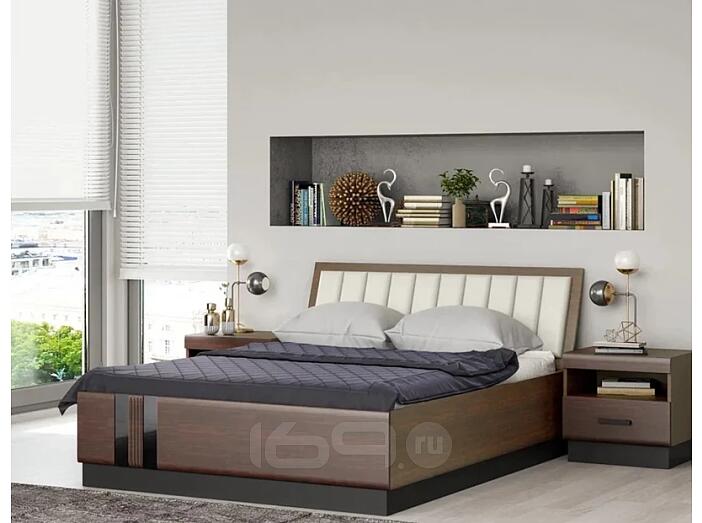 Кровать Магнолия экокожа дерево с подъемным механизмом 1600x2000, изголовье мягкое