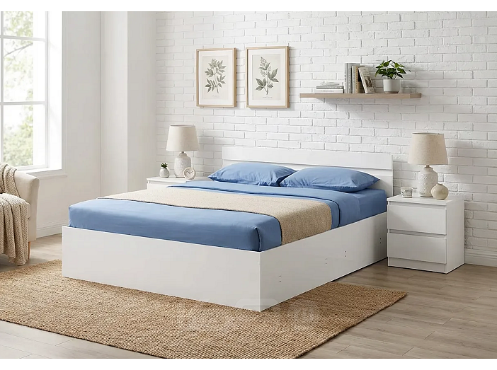 Кровать Нэнси без обивки белый глянец с подъемным механизмом 1400x2000, изголовье жесткое