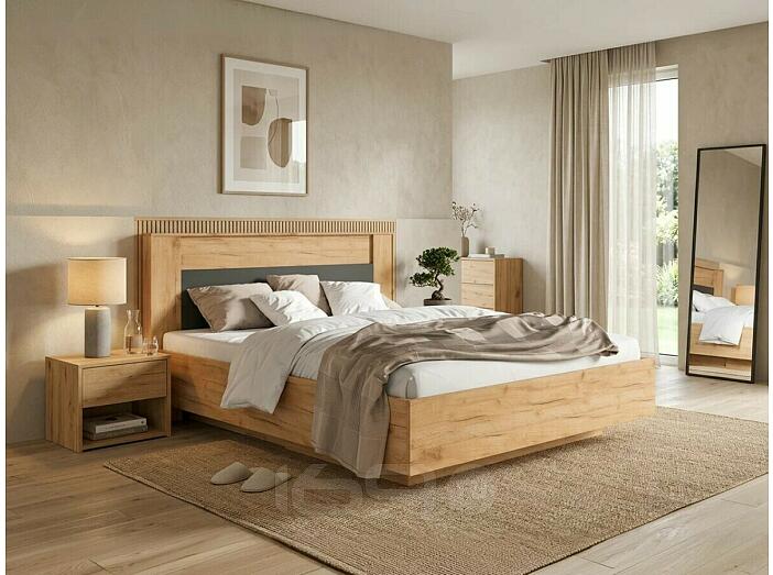 Кровать Остин без обивки дуб крафт С П/М 1600x2000, изголовье жесткое