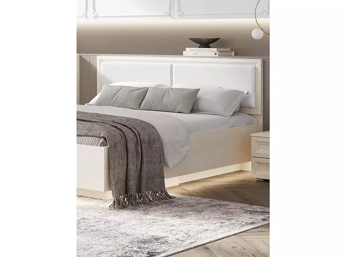 Кровать Престиж экокожа сандал светлый с подъемным механизмом 1600x2000, изголовье мягкое