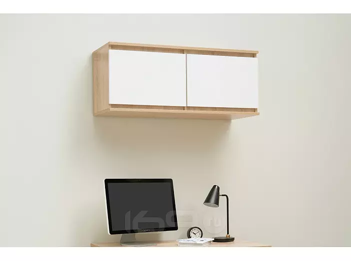 Челси Полка навесная (Антресоль малая) (Белый глянец, дуб сонома)