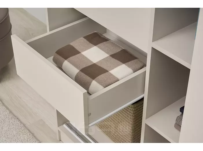 Раздвижные двери – двери с системой открывания купе. Она состоит из дверных полотен, направляющих, роликовых механизмов и ограничителей. Открывание и закрытие дверей происходит путем перемещения полотен по нижней и верхней направляющей, при этом одно из полотен заезжает за другое.