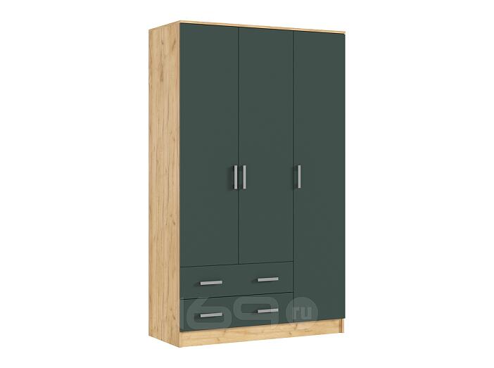 Шкаф 3-х ств. (Изумрудный (КРОМКА ИЗУМРУД), Дуб Крафт)